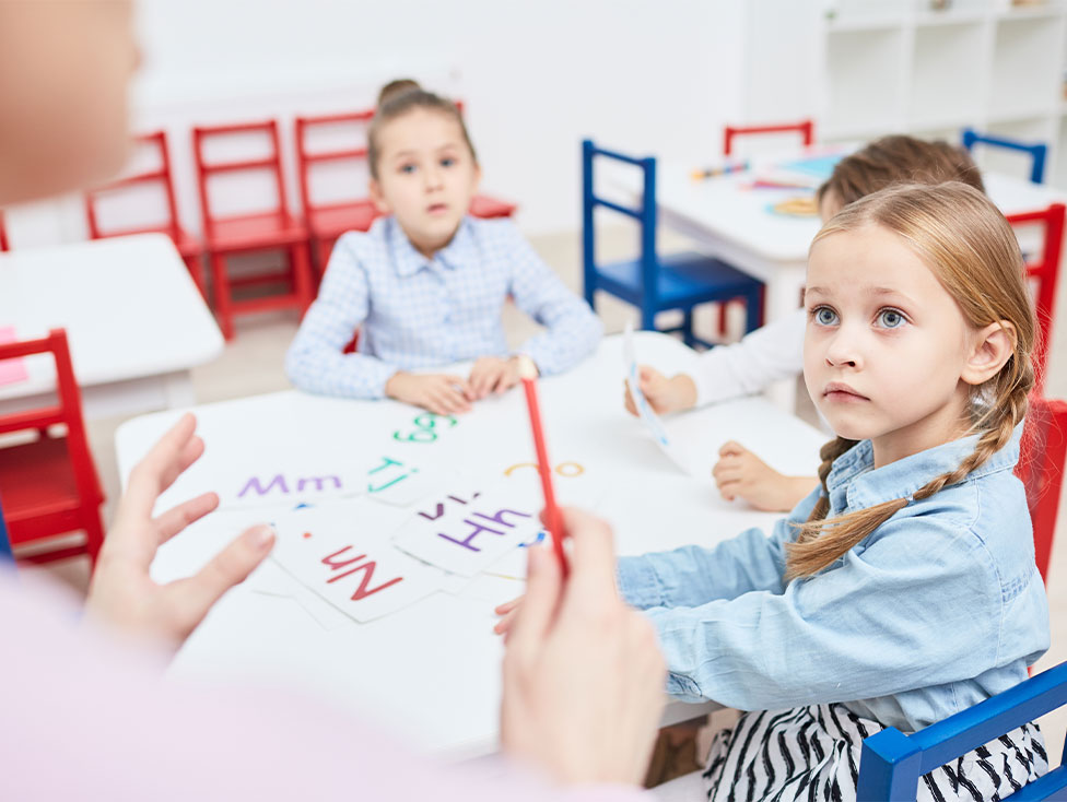 En classe, les enseignants encouragent la prise de parole. Pour cela, de courts dialogues sont joués. Les élèves travaillent la structure de la phrase en anglais. Ils apprennent à se saluer, à se présenter, à poser des questions et y répondre, etc. Cela se fait à travers des activités très variées : exercices, jeux, saynètes, lecture d’un album, etc. Et sur différents supports tels que des fiches afin de garder une trace, des activités au TBI (tableau blanc interactif) ou au VPI (vidéo projecteur interactif). Les jeux avec les « flashcards » rendent aussi les apprentissages ludiques et motivants.